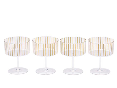 - Includes 4 champagne or dessert coupe glasses with gold stripe accents that will have you entertaining in style at your next event.