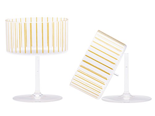 Sugar & Cloth Gold Stripe Disposable Plastic Champagne or Dessert Coupe Set, 4-Piece