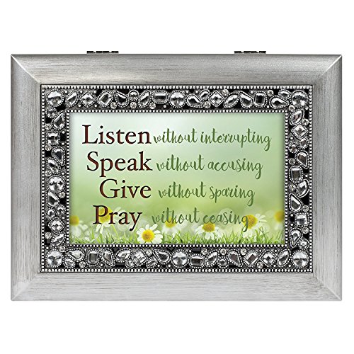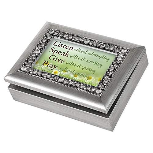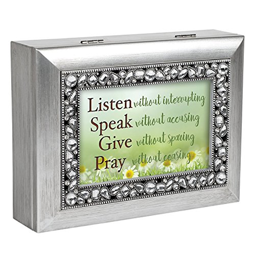 Listen, Speak, Give and Pray Daisies Brushed Silver Jeweled Music Box Plays You Light Up My Life
