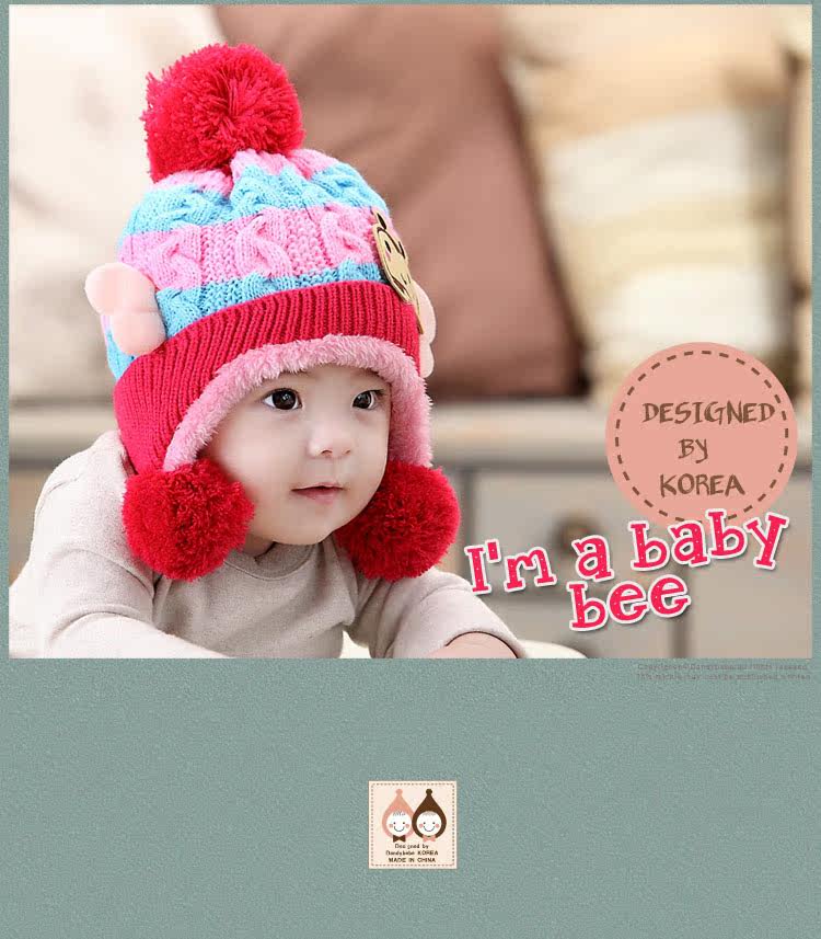 1)商品名称:冬季新款 韩版小蜜蜂造型毛线帽/加绒