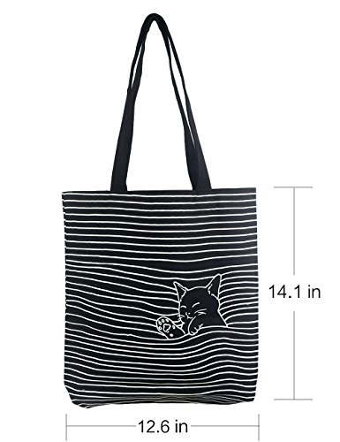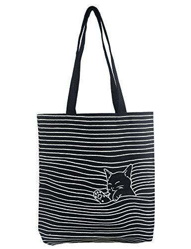 POPUCT Women's Cute Cat Canvas Tote Shopping Bag