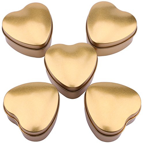 Dedoot 5PCs Heart Shape Mini Metal Tinplate Decorative Gift Box Containers for Jewelry Storage,Treasure Collection,Wedding Candy Treat Gift Wrap Boxes Home Table Decoration (Gold)