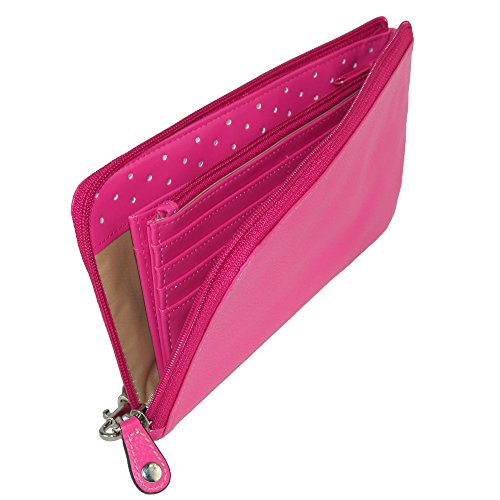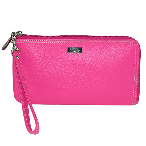 Secure your essentials while adding polish to your look with the Westcott RFID L-Zip Expandable Wallet with Removable Strap. Featuring naturally milled butter-soft leather, contrast stitch detail, and brushed nickel hardware and a removable wristlet for styling versatility. For maximum security this wallet also features an RFID lining, two sided zip compartment with multiple credit card slots, I.D. window, multiple gusseted slip pockets, and a zipper secured pocket to keep your cards and cash in place. RFID lining Brushed nickel hardware Zipper secured pocket Removable wristlet 40% Leather, 30% PU, 20% PVC, 10% Nylon.Feature