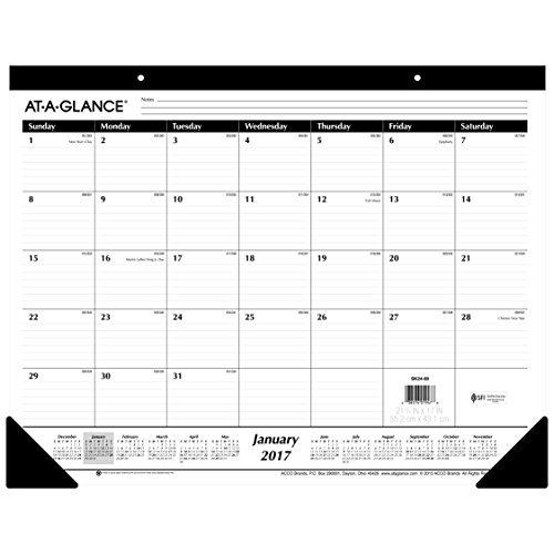 -. Title : AT-A-GLANCE Desk Pad Calendar 2017, Monthly, 21-5/8 x 16-7/8", Black/White (SK24B00)