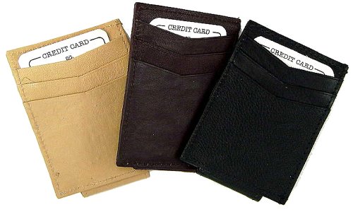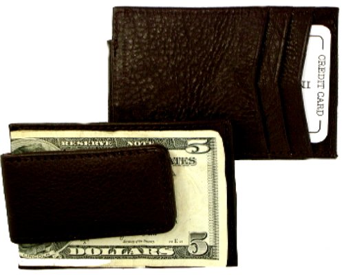 Black hand crafted genuine leather magnetic money clip. Made from the highest grain leather. Handcrafted. One side of the wallet includes an exterior magnetic money clip and on the other 3 credit card slots. It has an extra on the side for ID's and additional cards. Magnet is very strong and will hold over 10 bills folded. It measures 4.125" x 2.75". Wallets have become the male version of the pocket book. We have so many folds, slots and pullouts that we use our trusty wallets to carry the written record of every event in our life. 95% of the things in your wallet are useless. Here are 3 reasons to start using a money clip instead of a wallet today: 1. Consolidation. Most of the items in your wallet are useless. How about forcing yourself to get rid of them. You'll have no room for such a waste of space with a money clip. The only things you'll want to put in your money clip are a few bills and a couple of major credit cards. 2. Style. Money clips are quite simply the cool new way to carry your money. From Hollywood movie stars to corporate executives to pro athletes, money clips are at the forefront of men's fashion. They are sleek, streamlined and very hip. This isn't your grandfather's wallet! 3. Ease. How many times have you been fumbling at the checkout counter trying to remove some bills from your bulky wallet? Countless, I bet. Wallet's are not very user friendly at all. A money clip on the other hand is so easy to use. A simple folding of the bills and your cash slides right in and out with a simple tug or push