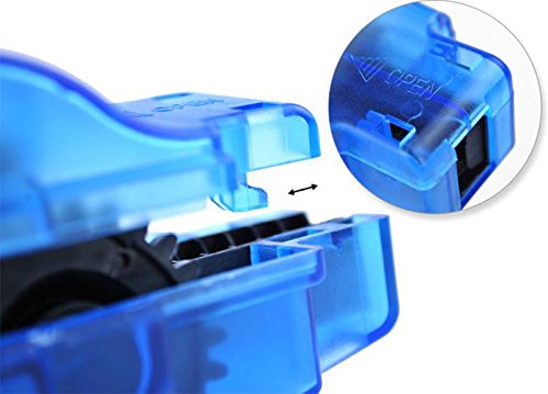- Feature : Smarter design - The outdoors chain cleaner utilizes a single clamp in the middle of the device to lock the product together when cleaning; / Easy and simple to use- Cleaner clips directly to the chain,no need to remove the chain from the bicycle,cleans quickly and easily in just one minute; / Pefect for all types of bikes - Whether you ride the roads, the sidewalks, the beach, or the trails, this will clean your bikes chain; / Durable- Made from heavy duty plastic to ensure long ; Lasting and superior performance. No flimsy metallic pieces to rust and break away; / Versatile- For free wheel designs, simply attach the cleaner to the chain and use the pedal to turn the chain. For bikes with coaster brakes, the bicycle must be elevated or flipped over in order to work.