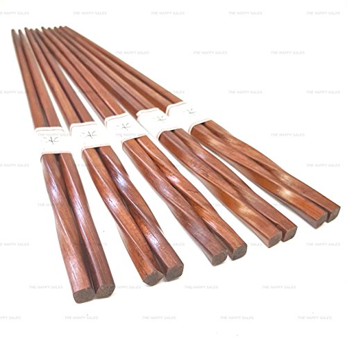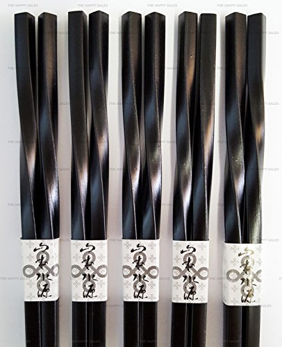 -. Title : Happy Sales 5 Pairs Spiral Wooden Chopstick set Black