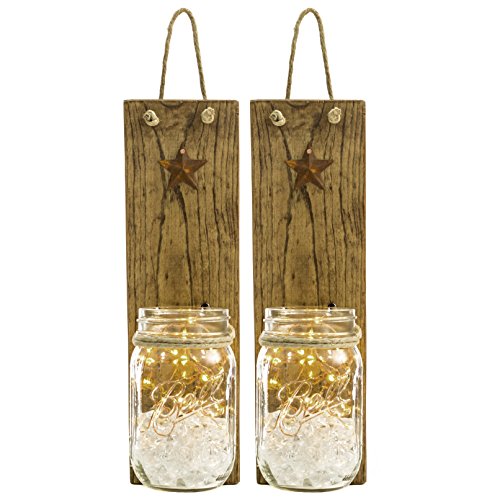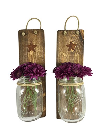 Heartful Home Decor, Ball Mason Jar Wall Sconces - Primitive Country - Set of 2 - Perfect for Candles, Flowers, or Anything You Like to Showcase, Top Rustic Housewarming Gift (Provincial)