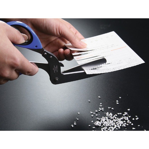郵便物や公共料金の明細、スーパーなどのポイントカードなど、個人情報が記載されたものは増え続けていると同時に、その管理については社会問題にもなっています。せめて、手元にある個人情報だけでもきちんと管理しましょう。廃棄する時には、シュレッダーなどを使い、他人に情報が漏れないようにする必要があります。本製品は手軽に使えるハサミ型のシュレッダーで、ハサミ形状なのにカットすると細かくバラバラになります。また、CDやDVDなどもカンタンに壊すこともできます。