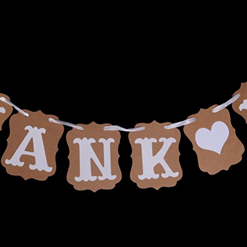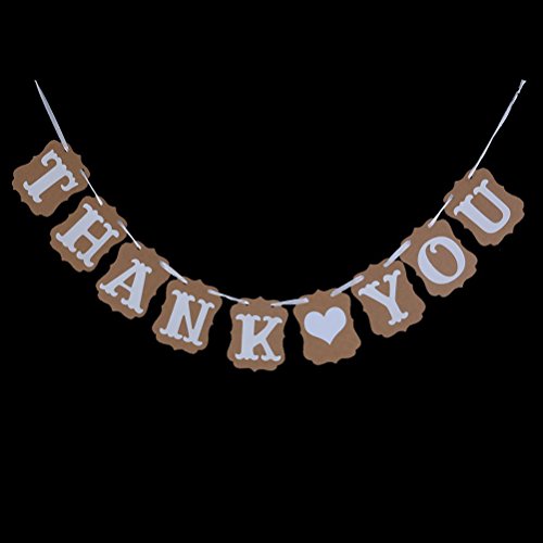 -. Feature : Color: mainly brown, white. Made of cardboard paper with ribbon. / Ribbon length: Approx 2.4m 2.6 yd. Single card size: Approx 9.5*13.5cm 3.7*5.3 inch. / THANK YOU wedding party banner. 1 set includes: 9pcs banners and 1 rope / Suitable for wedding party, wedding ceremony use. / Note: rope and cards come separately, you must bind them with the rope.