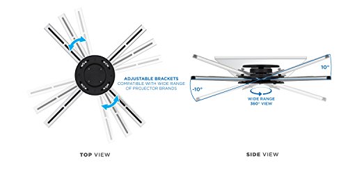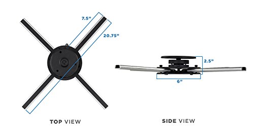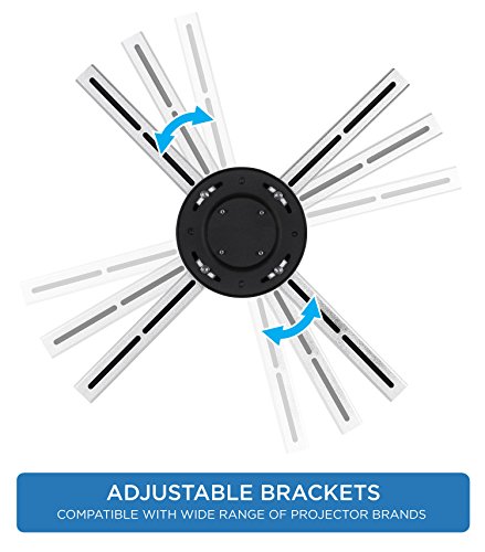 The mount has adjustable brackets to fit virtually all projectors in the market. The angle and length of the arms are adjustable to align with the connection holes on top of the projector. The mounting holes on back of projector must be between 6.3 inches and 19.5 inches.