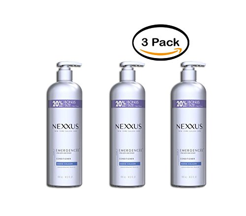 -. Binding : Misc. -. Brand : Nexxus -. EAN : 0658448750287 -. Feature : Step 2: Hair repair conditioner for weak and damaged hair restores hair for Strength Recovery / Enriched with Marine Collagen and Concentrated Elastin Protein / Salon crafted conditioner helps protect weakened hair / Reconstructs broken protein structures and recharges hairs resilience / Leaves hair fibers smooth while retaining natural hair movement -. IsAdultProduct : 0 -. Label : Nexxus -. LegalDisclaimer : Actual product packaging and materials may contain more and different information that what is shown on our website. we recommend that you do not rely solely on the information presented that you always read labels, warnings and direction before using and consuming a product. -. Manufacturer : Nexxus -. ProductGroup : Beauty -. ProductTypeName : BEAUTY -. Publisher : Nexxus -. Studio : Nexxus -. Title : PACK OF 3 - Nexxus Emergencée for Weak and Damaged Hair Conditioner, 16.5 oz -. UPC : 658448750287