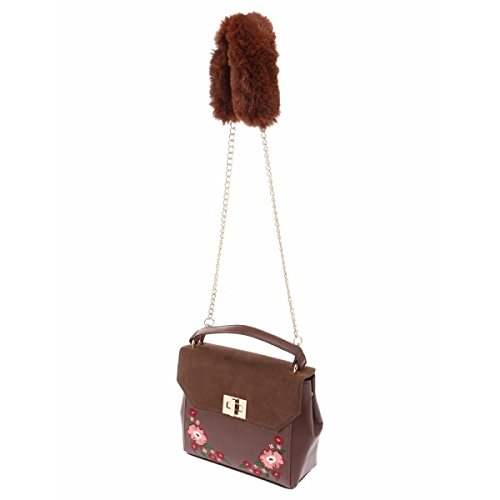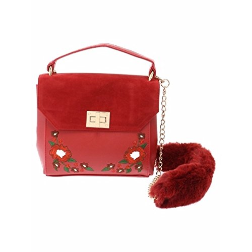 위고(레이디스)(WEGO) 위고(WEGO/플라워 자수 퍼(fur) 숄더백)【와인/F】