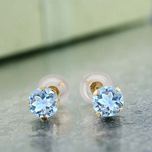 -. Title : 14K Yellow Gold Sky Blue Aquamarine 4-prong Stud Earrings (0.90 cttw, 5MM Round Cut)