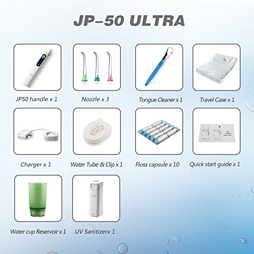 Jetpik JP50 Ultra - Rechargeable Electric Dental Flosser Oral Irrigator with Pulsating Floss + Water Jet Pik Power plus an UV Sanitizer