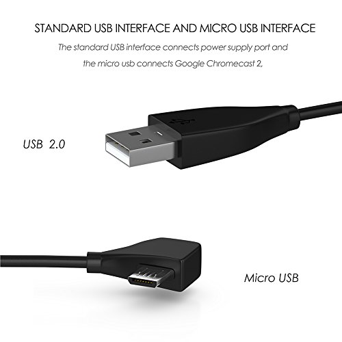 Chromecast 2 USB Cable, Lucco 7.8 Inch Curved Micro USB to USB Power Cable Standard Charger Cord for Google Chromecast2/Chromecast Audio or Other Round Micro USB Needed Devices