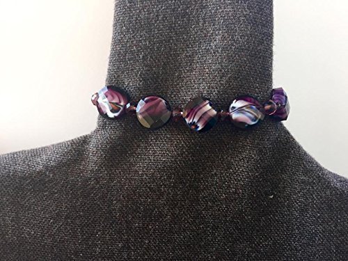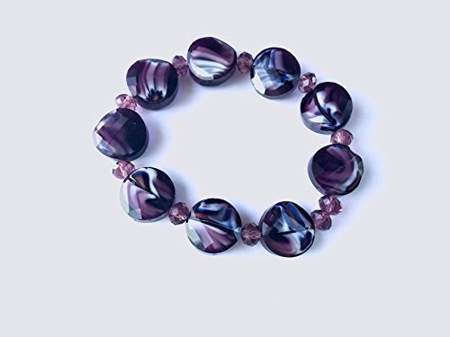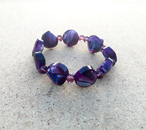 -. Title : 1 6" Glass marbled bracelet, purple bracelet, stretch bracelet, glass beaded bracelet, chunky bracelet