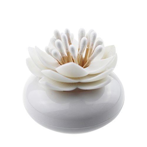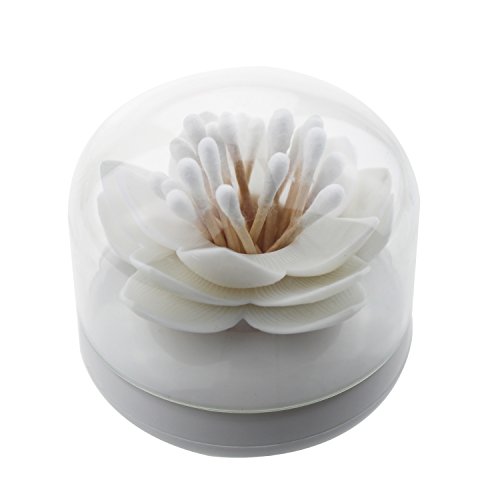 Gracallet® White Lotus Cotton Swab Holder, Small Q-tips Toothpicks Storage Organizer