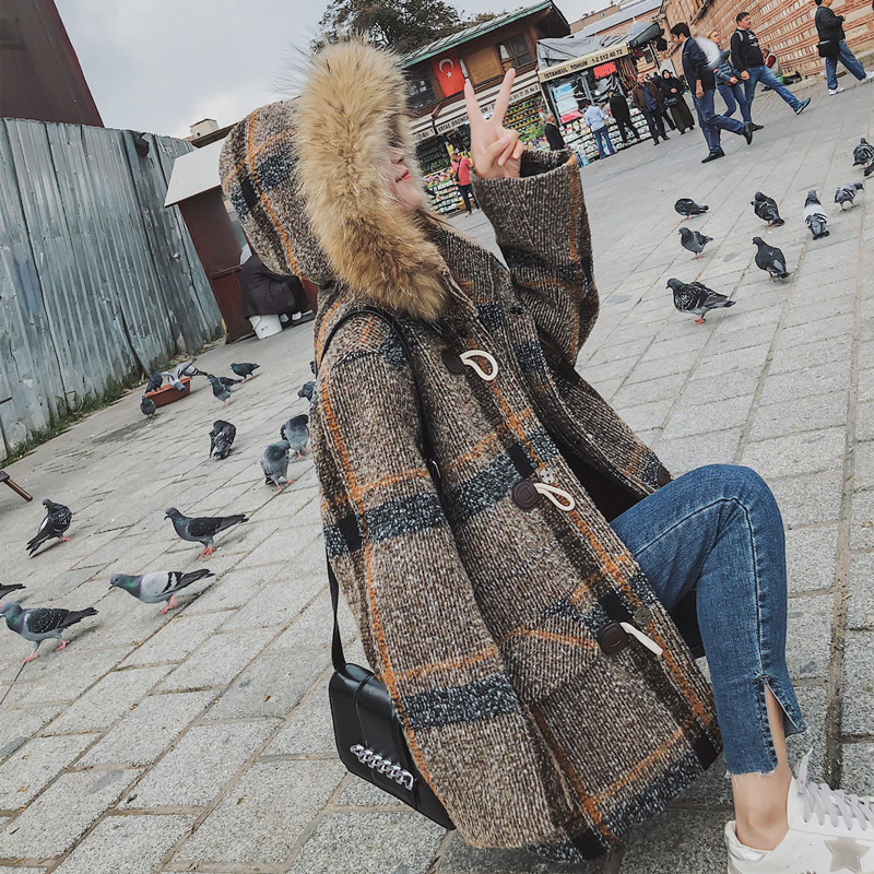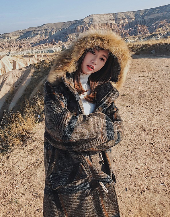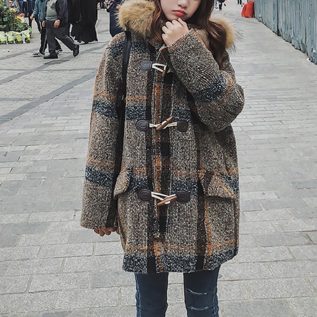 ウッドトグル×深みのあるチェック柄がナチュラルガーリーなダッフルコートです☆
