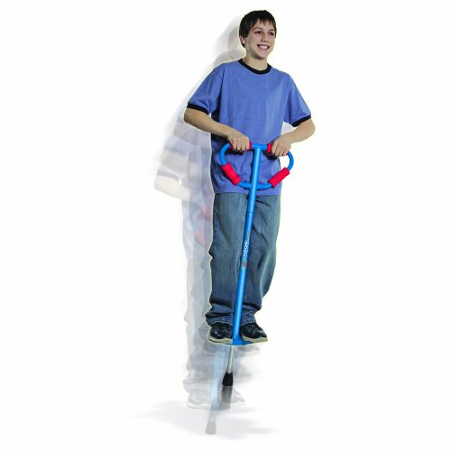 - Feature : Y-shaped handle with foam grips offers more hand positions for greater control and ease of use. / 44-inch-tall pogo stick is uniquely designed to offer greater security & stability, making it simpler for kids to master. / Metal spring is completely encased by a steel housing, thus eliminating the possibility of pinching. / Sturdy rubber "foot" is twice the diameter of most pogos; all surfaces are rounded for extra safety. / Color = BLUE. Also available in Red and smaller sizes (view on other Amazon item pages).