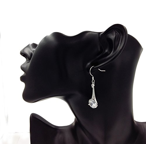 -. Feature : Platinum-Plated Silver tear drop earrings featuring sparkling round 10mm Cubic Zirconia stones, punctuated with 2.5mm small stones / 6.5 carats Cubic Zirconia reveals brilliant shine and a meticulous cut / Fishhook backings / High polish & Hypoallergenic / Delicate Gift Box included