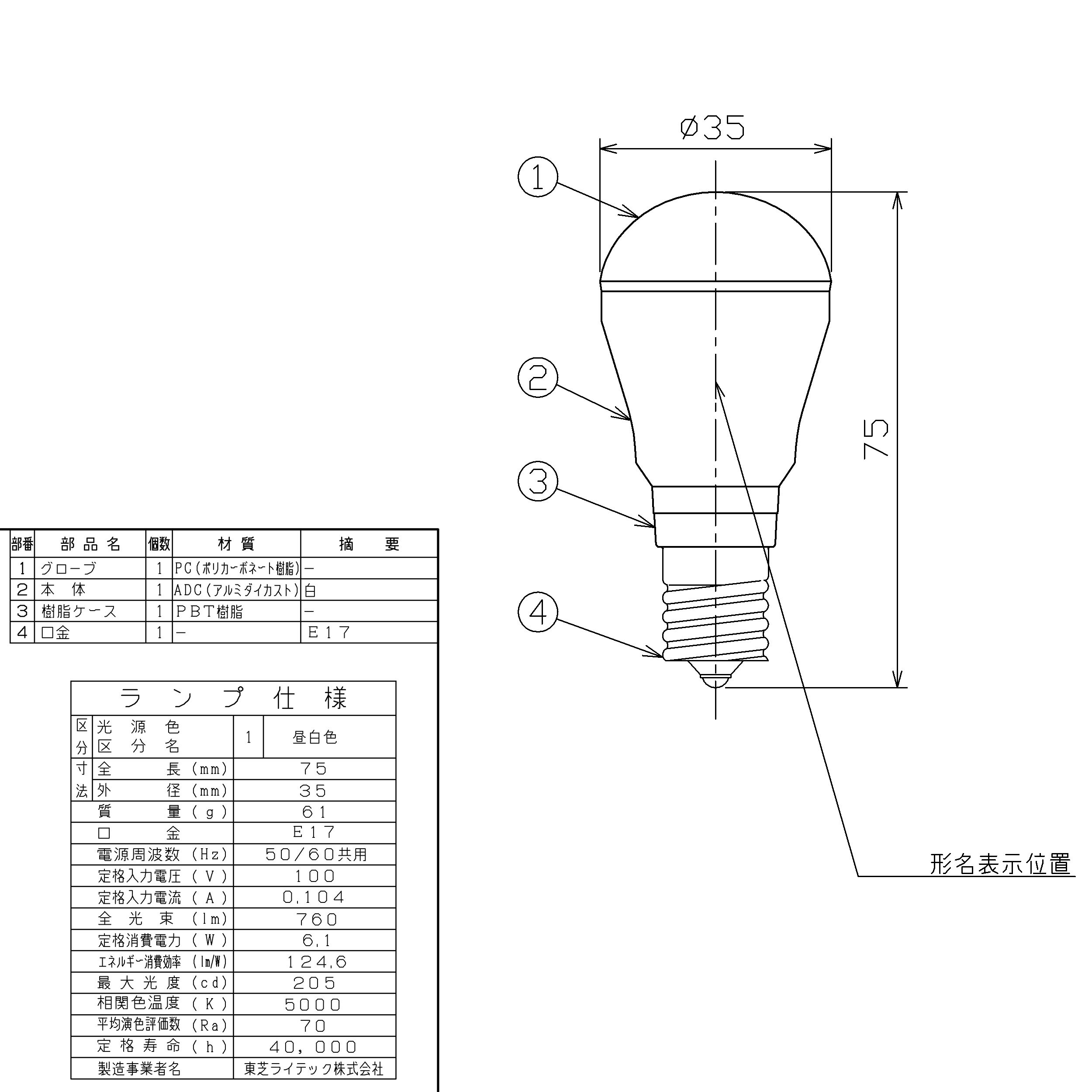 Brightness: 760 lm Distribution angle: 120 degrees Power consumption: 6.1 W Specific energy consumption efficiency: 105.3 lm / W