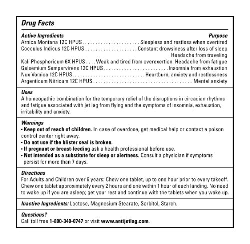 ReleaseDate : 2008-11-19 Studio : JetZone Publisher : JetZone Binding : Health and Beauty Product Description JetZone homeopathic was developed to help prevent jet lag in-flight safely without side effects. JetZone was developed for those traveling by jet across time zones for business pleasure, frequent flyers, flight attendants pilots. JetZone is a homeopathic combination for the temporary relief of the disruptions in circadian rhythms and fatigue associated with jet lag from flying and the symptoms of insomnia, exhaustion, irritability and anxiety. 0
