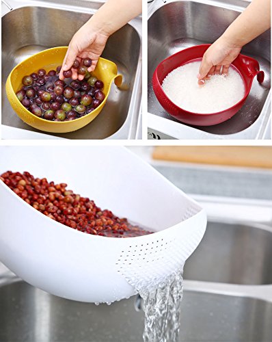 Multipurpose Handle Bowl with integrated colander / Mixing Bowl / Quinoa Strainer - Makes washing of Rice ,Quinoa, Vegetables and Fruits Easier(Big)