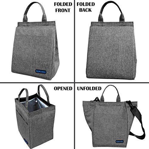 Lunch Bag Lunch Box Cooler Bag by KOKAKO Insulated with Shoulder Strap for Men Women Kids (gray)