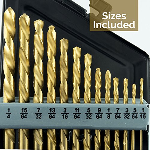 - Set includes: 1/16, 5/64, 3/32, 7/64, 1/8, 9/64, 5/32, 11/64, 3/16, 13/64, 7/32, 15/64 and 1/4 inch bits; Comes in metal index case for easy storage