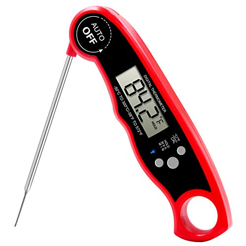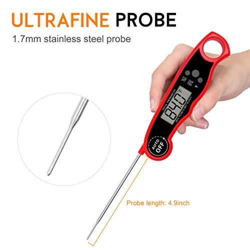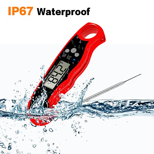 - 【IP67 Compact Foldable Probe】: With the IP67 waterproof design,the item can survive an accident fall into water.(not longer than 30 mins).No more worried about cleaning problems. Auto-shut off to save battery life if readout stays for 10 minutes.(Battery Included).