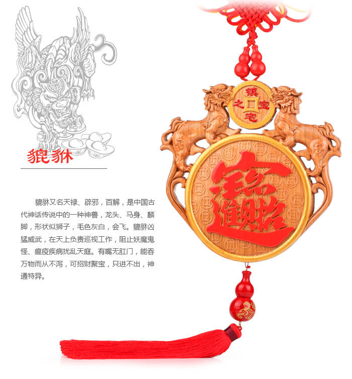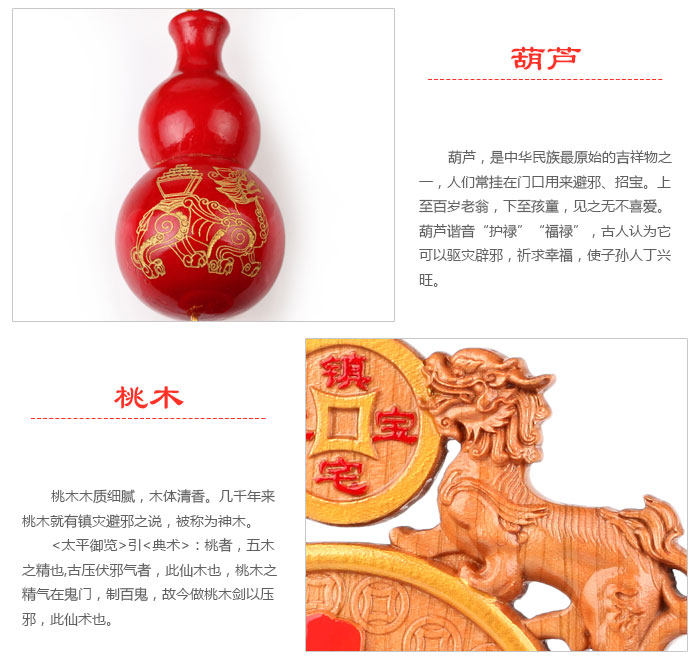 此款桃木雕巧妙地运用走兽、文字等,以民间谚语为题材,通过比拟、双关、谐音、象征等手法,创造出图形与吉祥寓意完美结合的雕刻艺术形式。