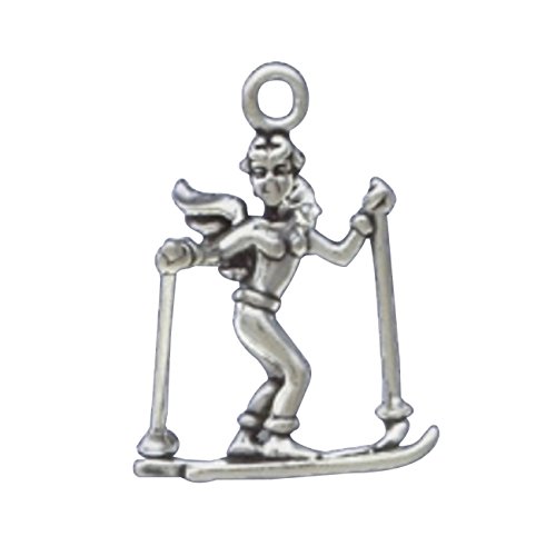 -. Title : Sterling Silver Girls .8mm Box Chain 3D Woman Angel Wings Skiing Sports Pendant Necklace