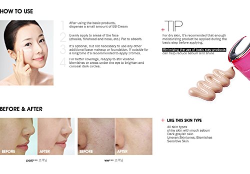 Size: 50g Released in June 2014. Slimmer design and more quantity! 3 Functional BB Cream providing the effects of Whitening, Wrinkle Improvement, and Ultraviolet rays interception SPF25 PA++ KFDA 3 Functions Certifications It is a triple functional beblesh balm, which presents natural skin texture with light application and powdery skin with Matte finish Melting Formula Bromelin,cares excessive sebum to prevent greasiness and darkening and Sepicalm S helps soothes tired and stressed skin from the external stimulus For Combination/Oily Skin