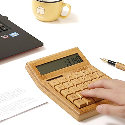 Sengu Functional Desktop Calculator Solar Power Bamboo Calculators with 12-digit Large Display