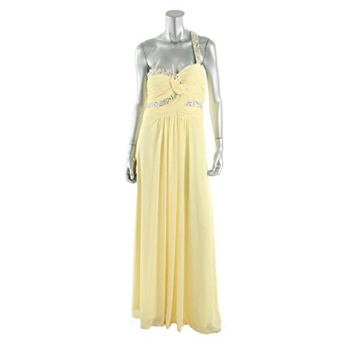 This Onyx Nite Women's Gown features pleating at bodice, single embellished cross strap, beading embellishments at bodice, empire silhouette, pleating at front waist, hidden zip with hook and eye closure, snap button and three hook eye closure at cutout back closure, fully lined, spot clean only. Perfect for prom, or any special occasion.Feature