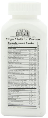 -. Binding : Health and Beauty -. Brand : 21st Century -. EAN : 0740985226599 -. Feature : It contains 35 essential vitamins and minerals. / It is a dietary supplement. / It is for women's health. -. IsAdultProduct : 0 -. Label : 21st Century -. Manufacturer : 21st Century -. MPN : 530276 -. NumberOfItems : 1 -. PackageQuantity : 1 -. PartNumber : 530276 -. ProductGroup : Health and Beauty -. ProductTypeName : HEALTH_PERSONAL_CARE -. PublicationDate : 2011-01-21 -. Publisher : 21st Century -. Studio : 21st Century -. Title : 21st Century Mega Multi for Women Tablets, 90-Count -. UPC : 740985226599