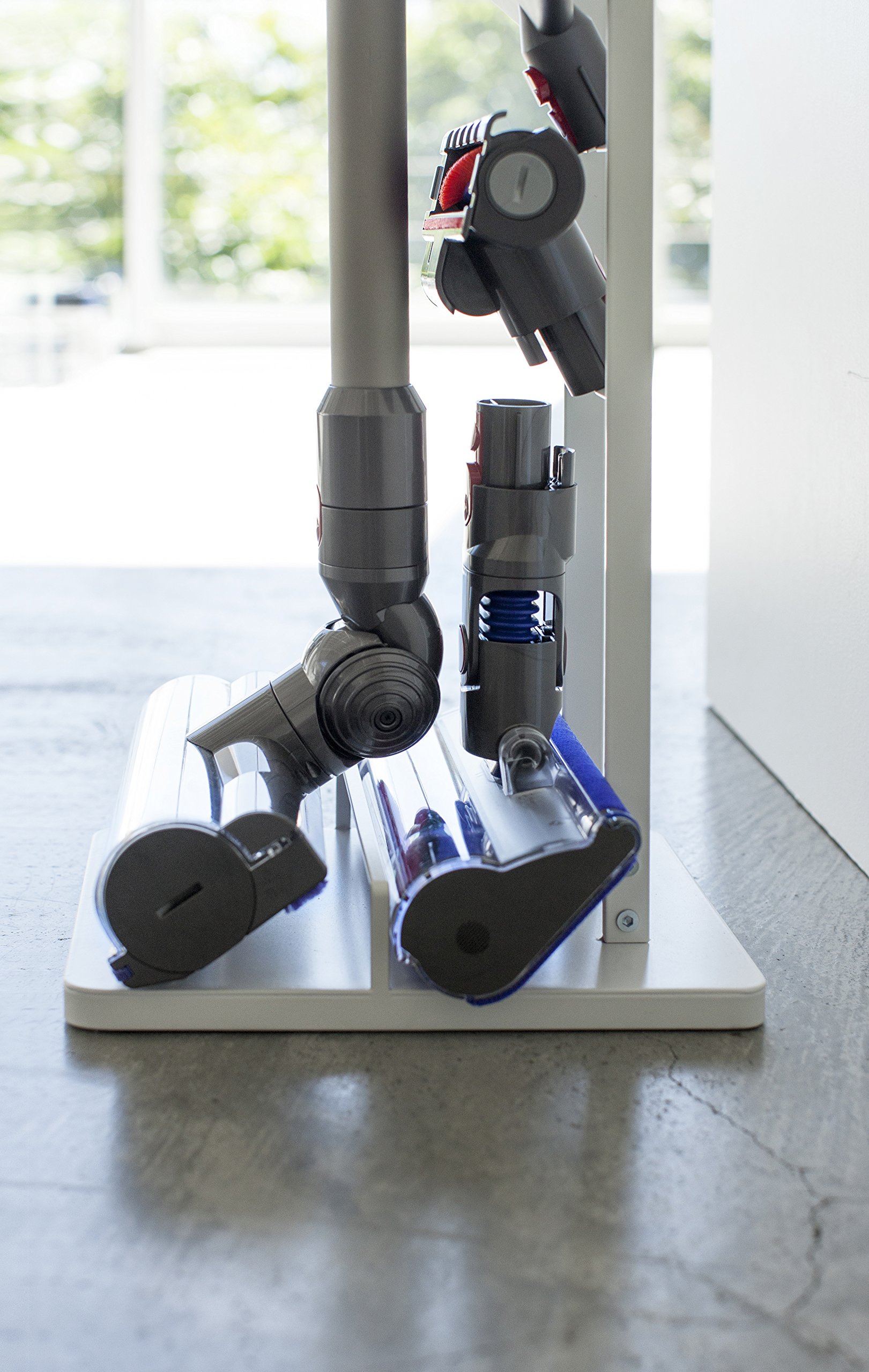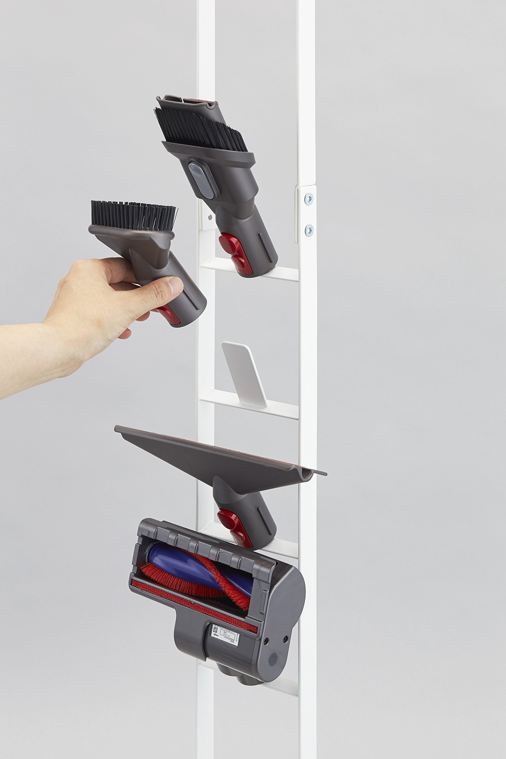 A convenient cleaner stand which can store a cordless cleaner slim without opening a hole in the wall.