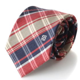베이지색과 네이비색상의 조합이 멋스러운 빅체크 슬림넥타이