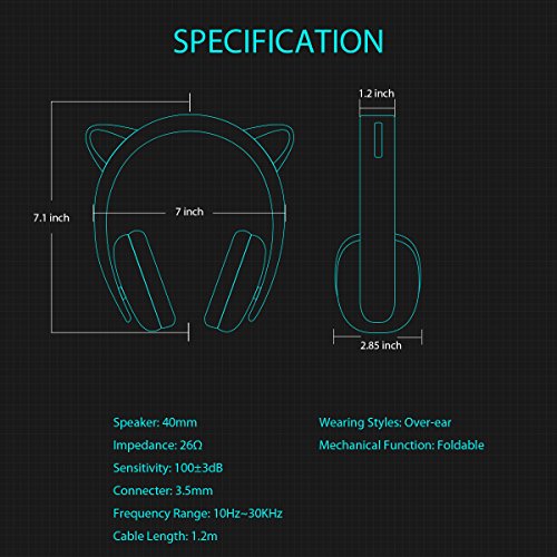 -. Title : Censi Moecen Wired Over Ear Headphones, Replaceable Cat Ear Headphones Foldable Noise Canceling Headset for Smartphone, PC