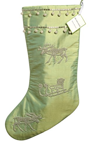 Arcadia Home Green Silk Stocking with Hand Beaded Silver Moose