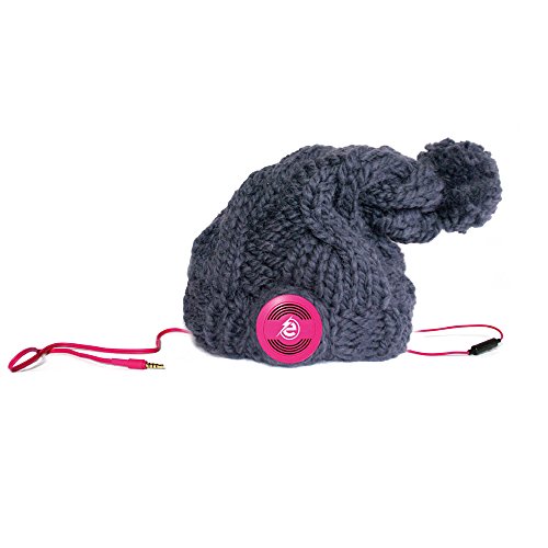 -. Title : Earebel Dark Grey Hand Knitted Plait Bobble Hat Beanie with Built-In AKG Headphones, Buckland