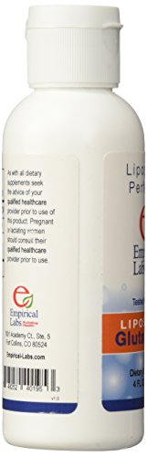 -. Binding : Health and Beauty -. Brand : Empirical Labs -. EAN : 8852657456981 -. Feature : Empirical Labs Liposomal Glutathione 4 oz -. IsAdultProduct : 0 -. Label : EMPIRICAL LABS -. LegalDisclaimer : The statements and product have not been evaluated by the FDA. They are not intended to diagnose, treat, cure or prevent any disease. They are the expressed opinion of John Gray for the sole purpose of educating the public regarding their health, happiness and improved quality of relationships. Individual results may vary. Seek the advice of a competent health care professional for your specific health concerns.Actual product packaging and materials may contain more and different information than what is shown on our website. We recommend that you do not rely solely on the information presented and that you always read labels, warnings, and directions before using or consuming a product. Please see our full disclaimer below. -. Manufacturer : EMPIRICAL LABS -. MPN : EHLIPOGSH -. PackageQuantity : 1 -. PartNumber : EHLIPOGSH -. ProductGroup : Health and Beauty -. ProductTypeName : HEALTH_PERSONAL_CARE -. Publisher : EMPIRICAL LABS -. Studio : EMPIRICAL LABS -. Title : Liposomal Glutathione 4.fl. ounce -. UPC : 884925428527