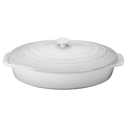 Le Creuset Stoneware Covered Oval Casserole, 3-3/4-Quart, White