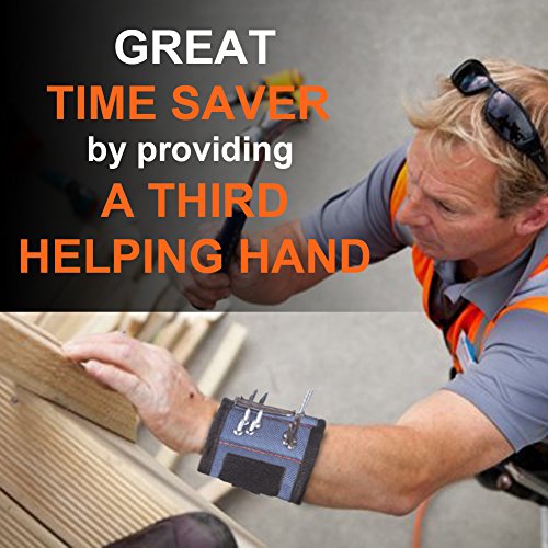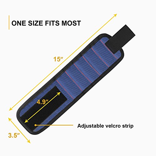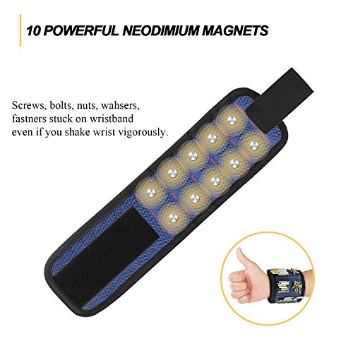 - STRONG MAGNETICALLY. The magnetic wristband is embeded with 10pcs powerful magnets. Screws, drill bits, nails, washers on them will not drop off even though you vigorously shake your wrist. While at the same time, it's easy to pick up them.