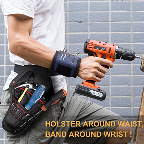 - BEST PARTNER TO HANDWORK. Holster around waist, Band around wrist! No more screws missed. Drill always at hand!