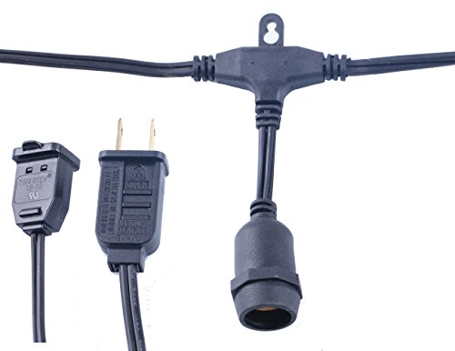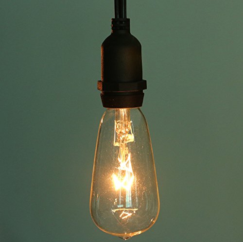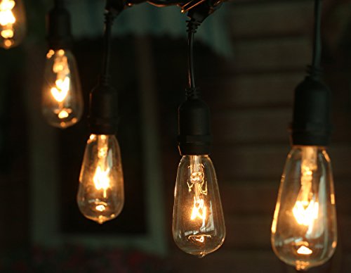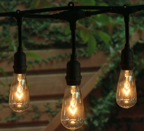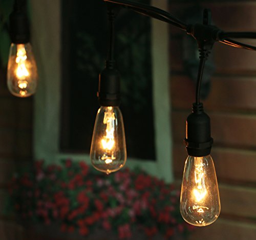 18Ft Outdoor Weatherproof String Lights with 12 Hanging Sockets & 7Watt ST40 Clear Bulbs, UL Listed E17 Base Vintage Edison Light String for Patio, Porches, Bistro, Backyard, Black Wire