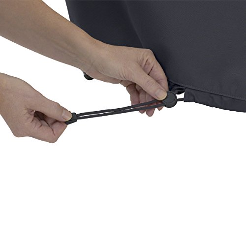 CUSTOM FIT OUTDOOR PATIO COVER: Water-resistant backing keeps your ceramic grill dry while elastic hem cords move easily through a special channel and custom-colored buckles attach for a snug fit