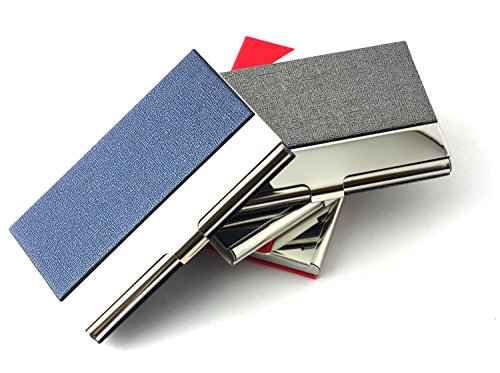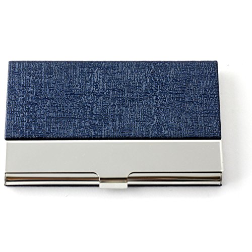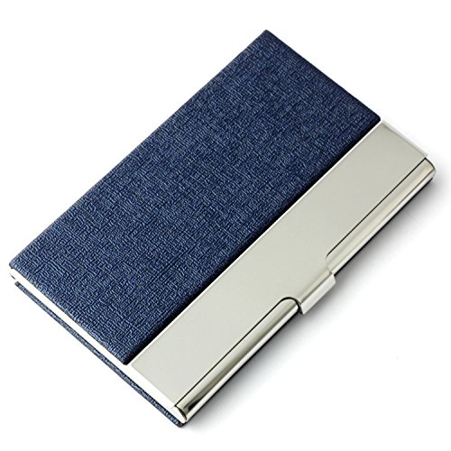 Partstock Unisex Business Name Card Holder 304 Stainless Steel & PU Leather Credit Card Case / ID Case.Keep Your Business Cards Clean,Perfect Gift - Blue