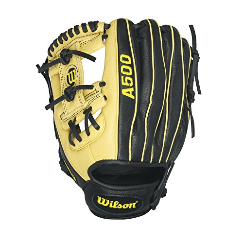 -. Binding : Sports -. Brand : Wilson -. Color : Black/Blonde -. Department : unisex -. EAN : 0887768360078 -. Feature : 11.5" infield h-web / Game-ready top grain leather shell provides all the feel without the wieght / 2X palm construction to reinforce the pocket / Dual welting for a durable pocket / The highest all-leather glove on the market -. Label : Wilson Sporting Goods - Team -. Manufacturer : Wilson Sporting Goods - Team -. Model : WTA05LB16115 -. MPN : WTA05LB16115 -. PackageQuantity : 1 -. PartNumber : WTA05LB16115 -. ProductGroup : Sports -. ProductTypeName : SPORTING_GOODS -. Publisher : Wilson Sporting Goods - Team -. Size : 11.5" -. Studio : Wilson Sporting Goods - Team -. Title : Wilson A500 Baseball Gloves, Black/Blonde, 11.5", Left Hand Throw -. UPC : 887768360078